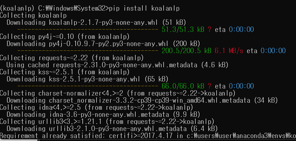 pip install koalanlp 를 했고.. 에러 코드 없이 잘 끝났고ㅠㅠ