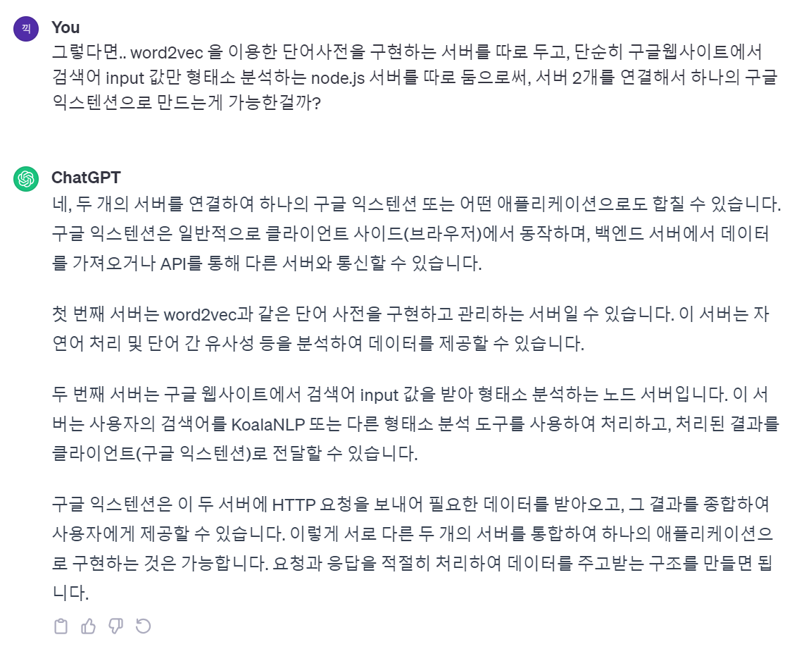 그래. 그냥 input 값만 형태소 분석하는 건 node.js 서버로 따로 만들어보자.