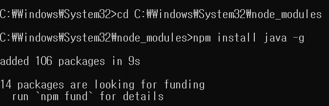 3. npm install java 를 했다.