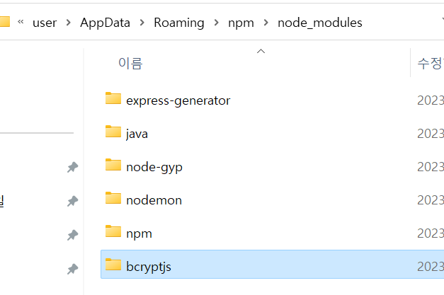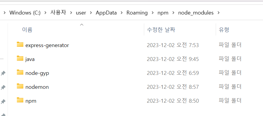 전역에서 다 사용할 수 있도록 C:\Users\user\AppData\Roaming ~~ 경로에 설치가 된다.