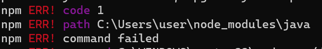 node_modules 경로에 java 가 없다고 한다.