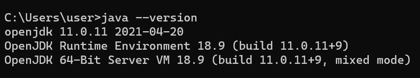 내 컴퓨터에 깔린 Java 버전을 확인해보겠다.. 난 Java 11 을 주로 썼었다.. 근데, 문제가 좀 있어서 python 배울때 지웠다가 다시 깐걸로 기억하는데....