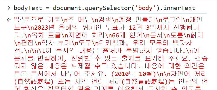 bodyText.match('자연어')되긴 되는데, 단 한개만 인식함..