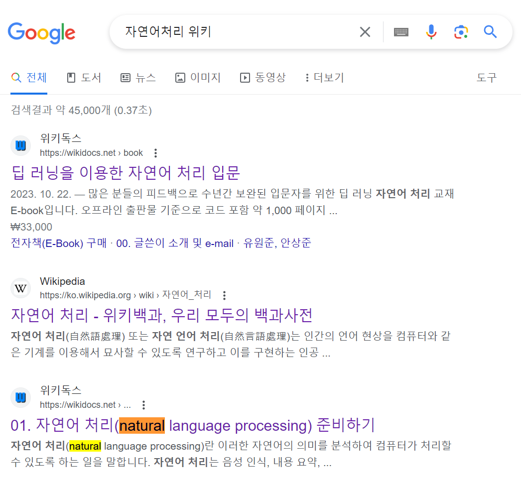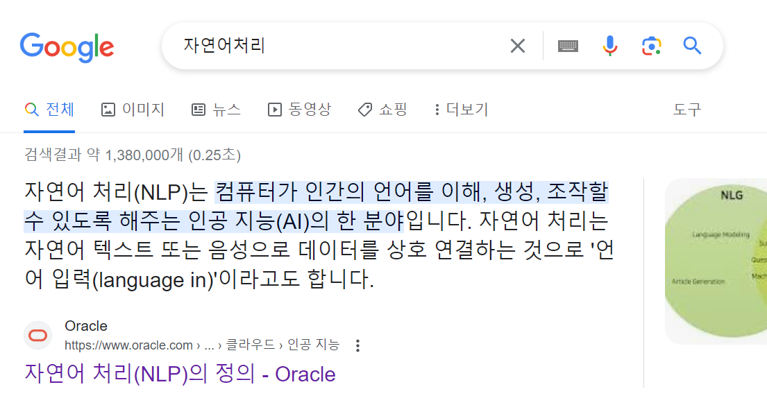 1. 구글에서 자연어처리를 검색한다.