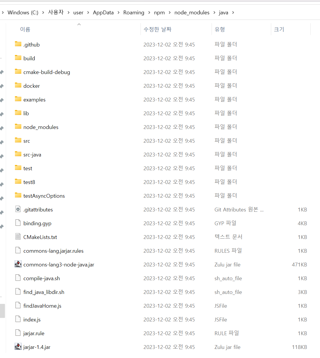 이렇게 없다고 하고, 실제로도 node_modules 폴더안에 java 를 찾아볼수 없었는데,