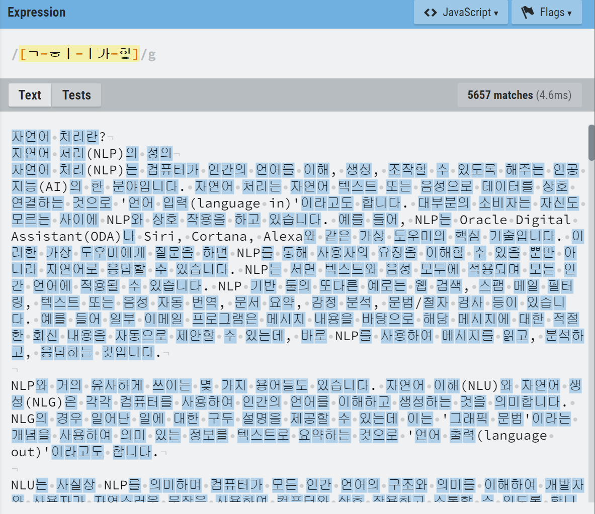 생각해보니 지금까지 영어를 대상으로 하는 정규식만 써봤다.