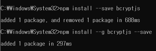 C:\Windows\System32>npm install --g bcryptjs --save 이렇게 -g를 붙이면?