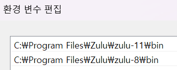 (참고 : Windows, Zulu(OpenJDK 11) 설치하기)