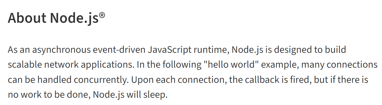 아하. 이제서야 Node.js 공식 홈페이지의 대문에 걸려있던 문장이 이해가 된다.