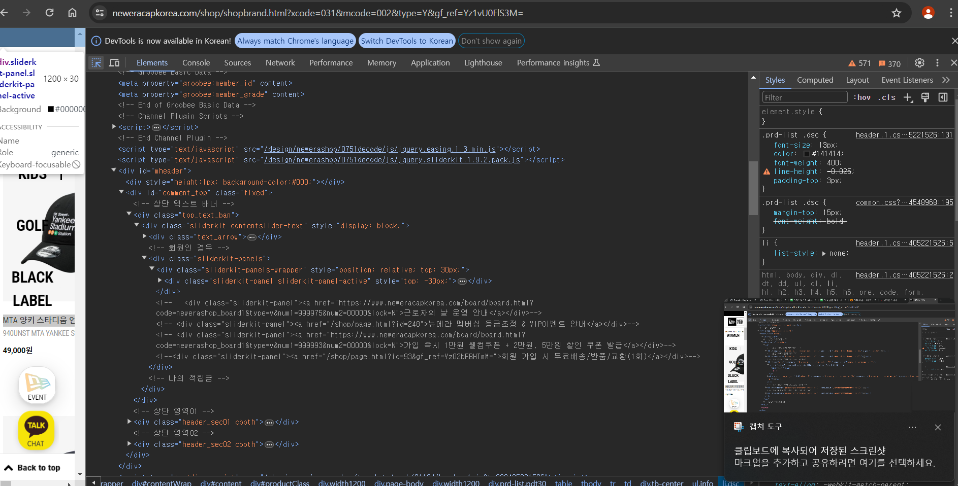 에 접속 - F12(개발자 도구) 까지 들어와서