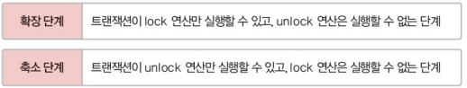 따라서 2단계 로킬 규약을 준수하는 트랜잭션은 첫 번째 unlock 연산 실행 전에 필요한 모든 lock 연산을 실행해야 한다.