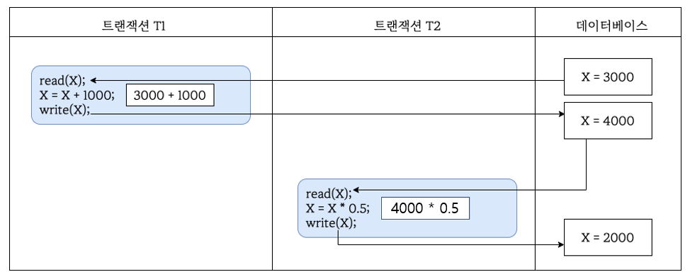 위와 같이 순차적으로 실행된다면 트랜잭션을 수행한 결과를 모두 반영할 수 있게 된다.