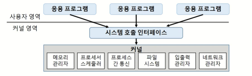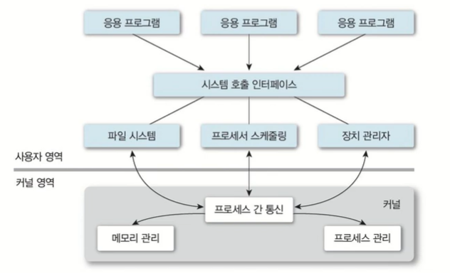 필수 기능만 포함, 기타 기능은 사용자 영역에서 수행
