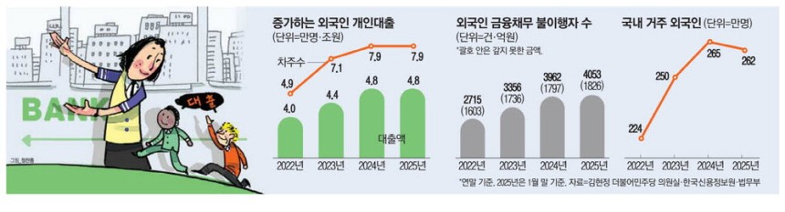 외국인 대출 부실 규모: 2022년 말 1603억 원 → 2024년 1월 1826억 원으로 증가.