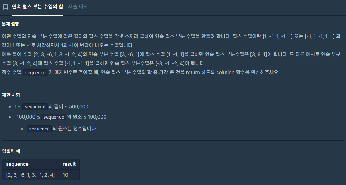 연속 펄스 부분 수열의 합
