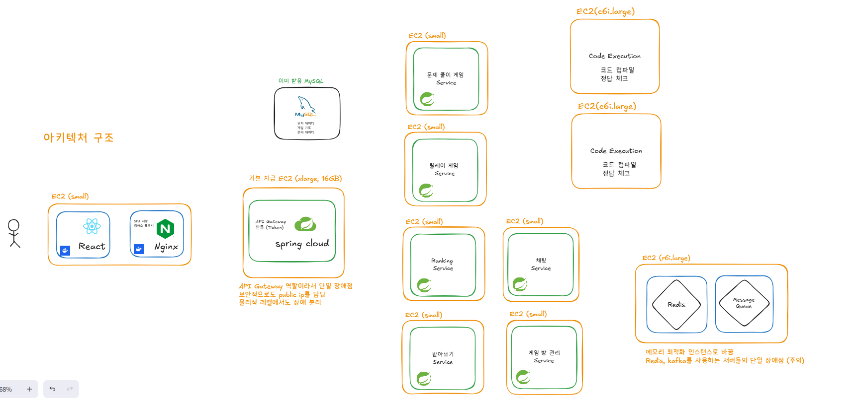 그렇기에 받아쓰기, 릴레이 게임, 문제 풀이 게임 Server를 각각의 EC2로 분리시켜 장애 격리를 시켰다.