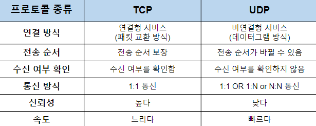 반면 UDP는 속도와 실시간성이 중요한 스트리밍, 게임, 통화 등에 적합한 비연결형 프로토콜입니다.