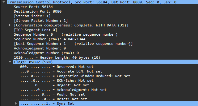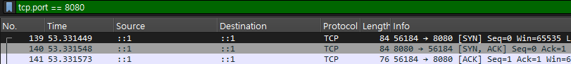 TCP Handshake 과정인 SYN -> SYN, ACK -> ACK 과정을 확인할 수 있다.