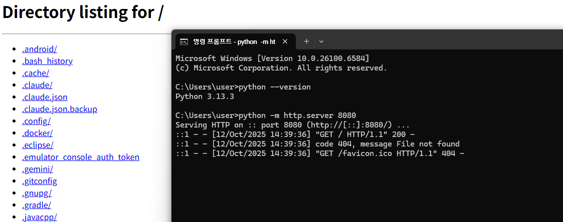 python 서버를 8080에 열어두고 localhost:8080으로 접속을 한다면