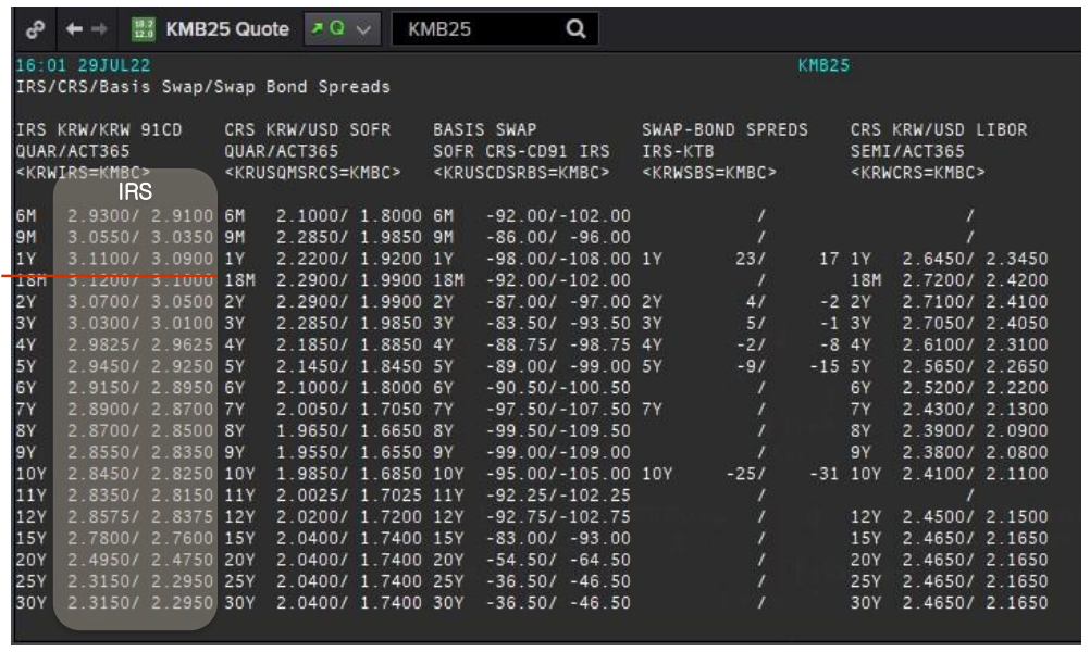Offer Rate : 스왑딜러가 Receive 하고자 하는 고정금리 / Bid Rate : 스왑딜러가 Pay 하고자 하는 고정금리