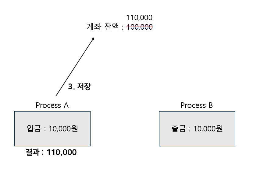 Process A가 실행되고 나면 계좌잔액은 110,000원이 된다.