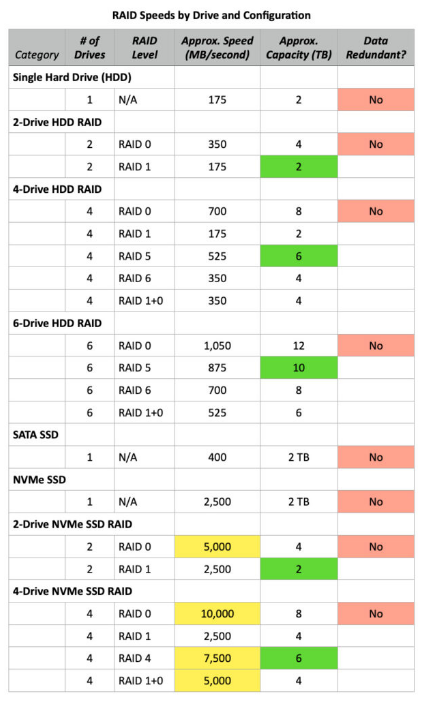 Raid 0,1,5,10 에서 속도가 가장 빠른 것은 RAID10