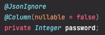 🔑@JsonIgnore라는 Annotaion을 통해 Json객체로 반환할 때 보여지지 않도록 함(무시)
