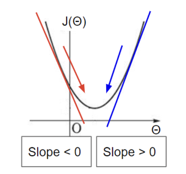 loss function에 대해서 미분하여 그 반대(-) 방향으로 업데이트 시키는 방법이다. 반대 방향인 이유는 아래와 같은 볼록 함수를 보면 기울기의 반대 방향으로 이동해야지 최저점(Loss가 가장 작은 지점)으로 갈 수 있기 때문!