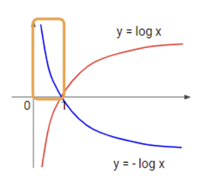 결국 도 확률값으로 0과 1사이의 값을 가지며, 함수에서 보면 노란색 박스 부분이 된다. 1에 가까워 질수록 로스 값(패널티)이 0에 수렴하고, 0에 가까워 질수록 로스 값이 무한대로 증가하는 부분만 떼서 로스 함수로 쓰는 것이다.