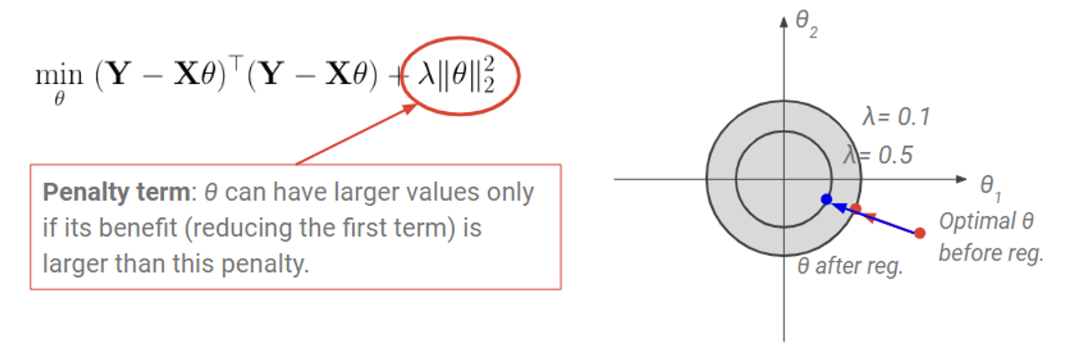 결국 우리가 해야하는 것은 전체 loss를 최소화하는 를 찾는 것이다. 따라서 앞에 를 줄이면서도 동시에 도 줄여야 하는 것! 이를 통해 세타 값이 너무 커지는 것을 방지할 수 있다.