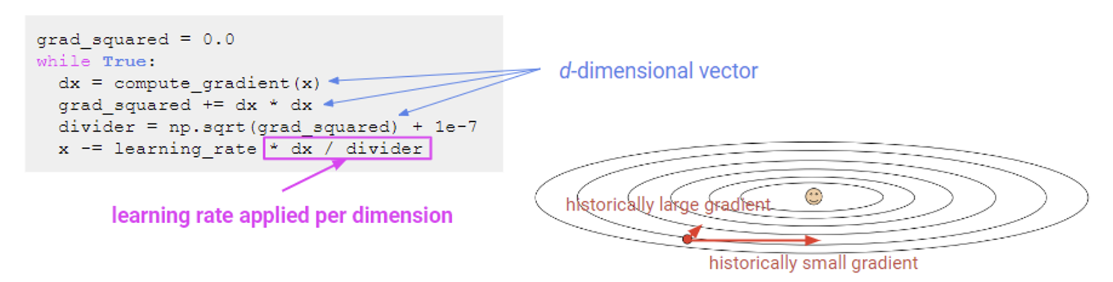 x -= learning_rate * dx / divider // 이전까지의 그래디언트 제곱 합으로 나눠줌