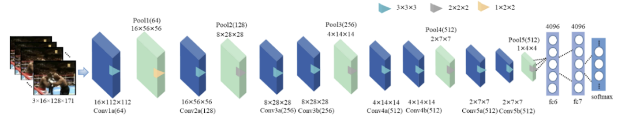 이름 그대로 Convolutional 3D인 모델이며 CNN을 사용하여 비디오 데이터를 처리하는 모델이다. 이 모델 이전에도 비슷한 논문이 나왔었지만 이땐 AlexNet이 나오기도 이전 모델이기 때문에 파장 없이 넘어간 케이스.