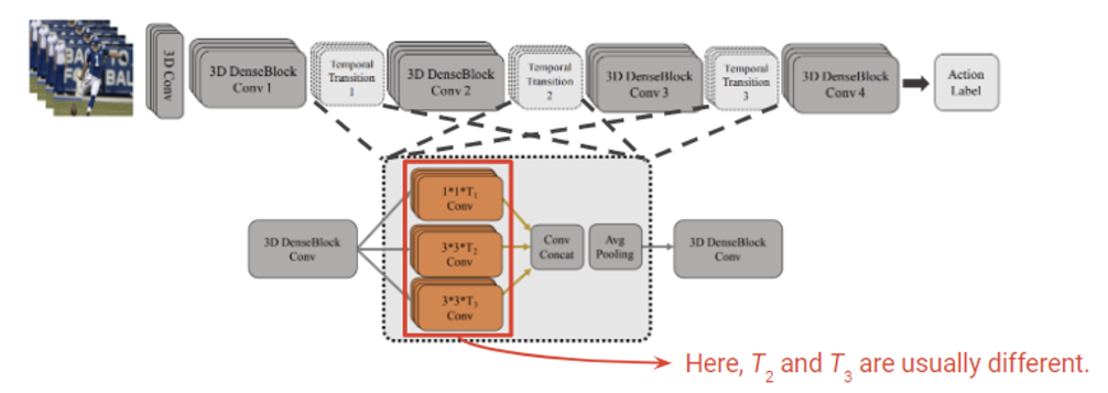 이번에는 DenseNet을 이용하여 만든 모델이다. DenseNet은 쉽게 설명하면 ResNet과 같은 skip connection을 모든 레이어와 연결하는 모델이다. 따라서 그래디언트 flow를 강화하면서 더 효율적으로 정보전달이 가능하게 만든 아키텍쳐라 볼 수 있다. T3D에서는 이러한 DenseNet을 이용해 모델링되었다.