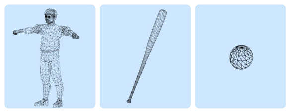 'Model' 은 컴퓨터가 이해하고 처리할 수 있는 형태로 물체를 표현한 것. 모델링 기법은 여러 가지 있을 수 있지만, 대개 물체의 표면은 'Polygon Mesh' 를 통해 표현함. 다각형들이 그물처럼 촘촘하게 엮여진 형태이며, 삼각형 메시가 가장 널리 쓰임. 다각형 메시를 깎아나가며 조작하는 것이 모델링의 핵심. Maya, 3ds Max, Blender 등을 통해 그래픽 디자이너들이 수행함.