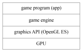 앞서 살펴본 대로, 런타임 시에 수행되는 애니메이션 재생, 렌더링, 후처리는 프로그램이 수행하는데, 게임의 경우 게임 엔진을 사용함. 게임 엔진은 게임을 만들기 위해 필수 불가결한 라이브러리들이 포함된 하나의 프레임워크. 게임 엔진의 하위에는 그래픽스 인터페이스가 있는데, 대표적으로 Microsoft 의 Direct3D, Khronos 의 OpenGL, OpenGL ES 등이 있음. 게임 엔진에서 그래픽 처리를 위해 그래픽 드라이버에 그래픽스 API 를 통해 명령을 내리고, 그래픽 드라이버는 GPU 를 가동해서 그래픽 처리를 수행하는 것.