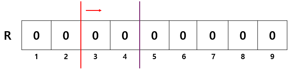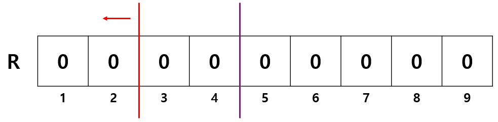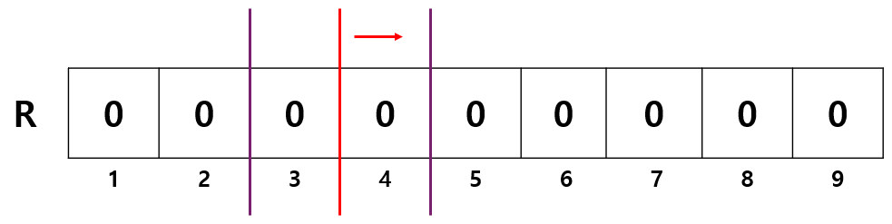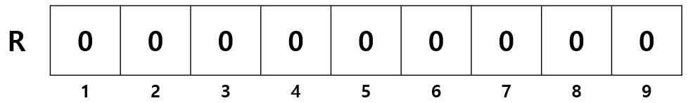 배열 R 을 하나 두고, 모두 0 으로 초기화한다. 편의상 인덱스는 1부터 시작한다.