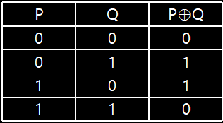 주어진 명제 중 1(참)이 홀수 개일때 배타적 논리합 P⊕Q는 1, 나머지는 0