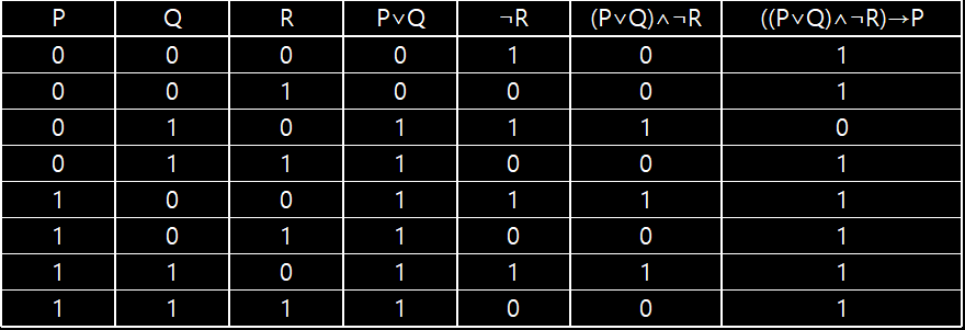 - ((P∨Q)∧¬R)→P의 진리표를 구하여라