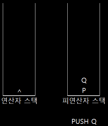 피연산자 Q 스택에 넣음 => PUSH Q 실행