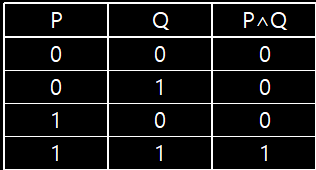 P 명제와 Q 명제 중 둘 다 1(참)일 때 논리곱 P∧Q은 1, 나머지 0