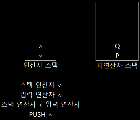 연산자 ∧ 스택에 넣음 => PUSH ∧ 실행