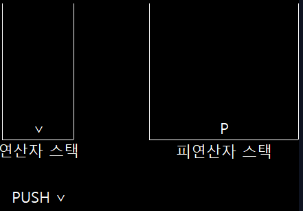 연산자 ∨ 스택에 넣음 => PUSH ∨ 실행