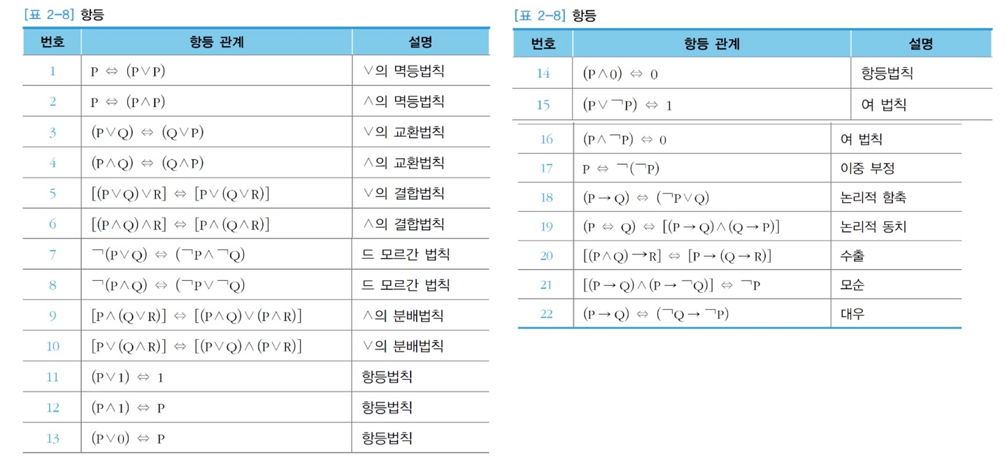 논리적 동치(Equivalence)란 P와 Q가 똑같은 진리값을 갖는 것을 말하고 논리적으로 동치인 명제로 명제들을 간단히 할 때 사용