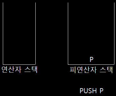 피연산자 P 스택에 넣음 => PUSH P 실행