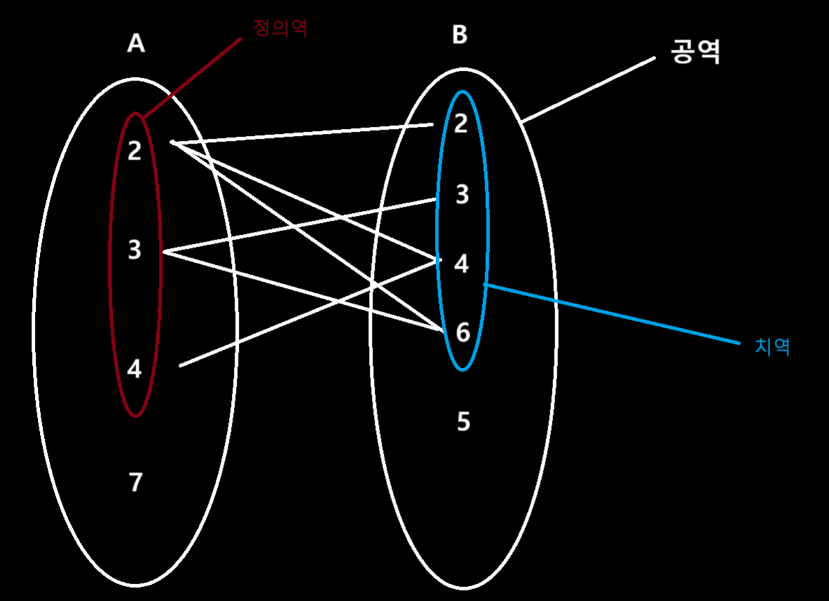 - 이항관계 R에 대해서 집합 B를 R의 정의역이라 정의
