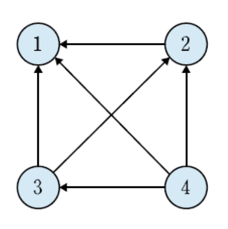 X = {1,2,3,4}, R = {(x,y) | x>y}라 할 때, R을 유향 그래프와 관계 행렬로 표현하라
