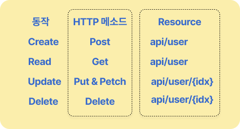 | 원격 프로시저 호출 방식(RPC) | 클라이언트가 서버의 특정 메서드를 호출하도록 설계 | 자원 중심이 아닌 함수 호출 방식으로 확장성과 유연성 부족 |