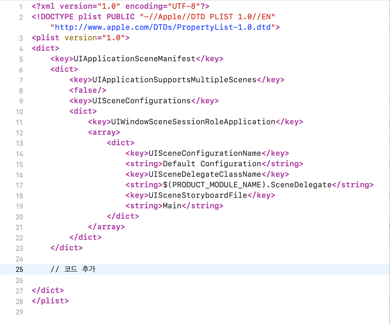 Info.plist 파일은 key type value 로 이루어진 table을 control할 수도 있고