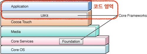 아래 이미지는 iOS 프레임워크의 계층 구조이다