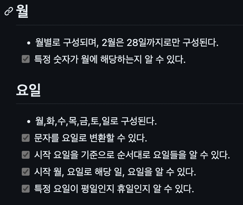 특히 기능 요구 사항을 읽어가면서, 처음에는 README에 아래의 내용을 작성해 나아간다. 기능 요구 사항을 읽어도 눈에 잘 안들어 올 수 있다.